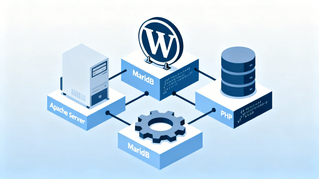 Para que WordPress funcione, necesita tres componentes principales que XAMPP te proporciona de forma sencilla. Imagínalos como el motor, el chasis y el combustible de tu web: